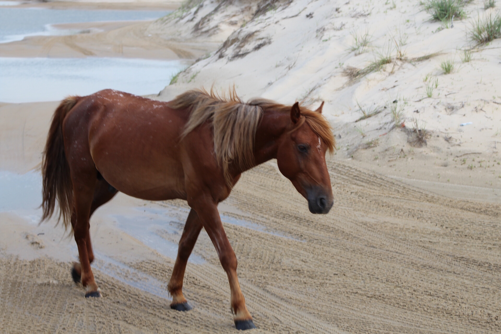 In the year 1492, there was this Italian guy who left from Spain to find a short route to the East Indies. He kind of muffed it. But, he did run across this new place that had some prospects. You’ve probably heard that story. So fast forward a bit and pretty soon the Spanish are sending boats to the American coast pretty routinely. The Outer Banks, it turns out, are particularly difficult to navigate. A naturally occurring string of barrier islands that span 200 miles, there are shoals and riptides and all kinds of fun little things for boats to stumble upon. No one knows for sure, but it is assumed that either the horses were tossed off a grounded ship to lighten the load or they somehow survived a wreck. Either way, a group of Spanish war horses (their DNA has been verified) made it to shore in the Outer Banks and have been hanging out in the wild for about 500 years.