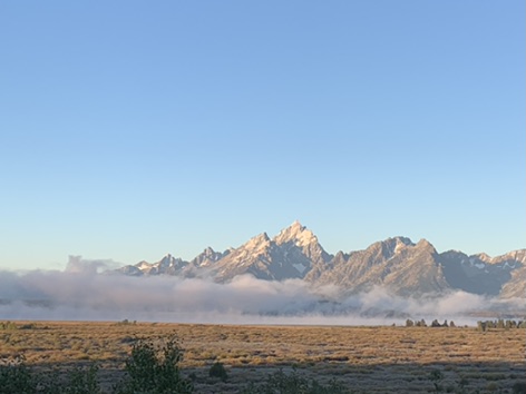 We selected the Jenny Lake hike for first thing Friday morning. It did not disappoint. This is an 8 mile hike around Jenny lake with the most iconic views of the Grand Tetons. The pictures are just amazing that I was able to take on this walk. This hike has it all, waterfalls, mountains, water, and panoramic views. After getting back from the hike we ate our packed lunch at the Jenny Lake Visitor center. We stopped along route 191 on our way back to take pictures at all the instagram recommended spots and then nap time! Friday evening we sat on the back deck in the sun, had a drink and relaxed. We also had dinner and watched the sun set at the fancy restaurant. I ordered Bison, because when in Rome, but honestly, I recommend traveling into Jackson to get better food. We couldn’t get a better view.